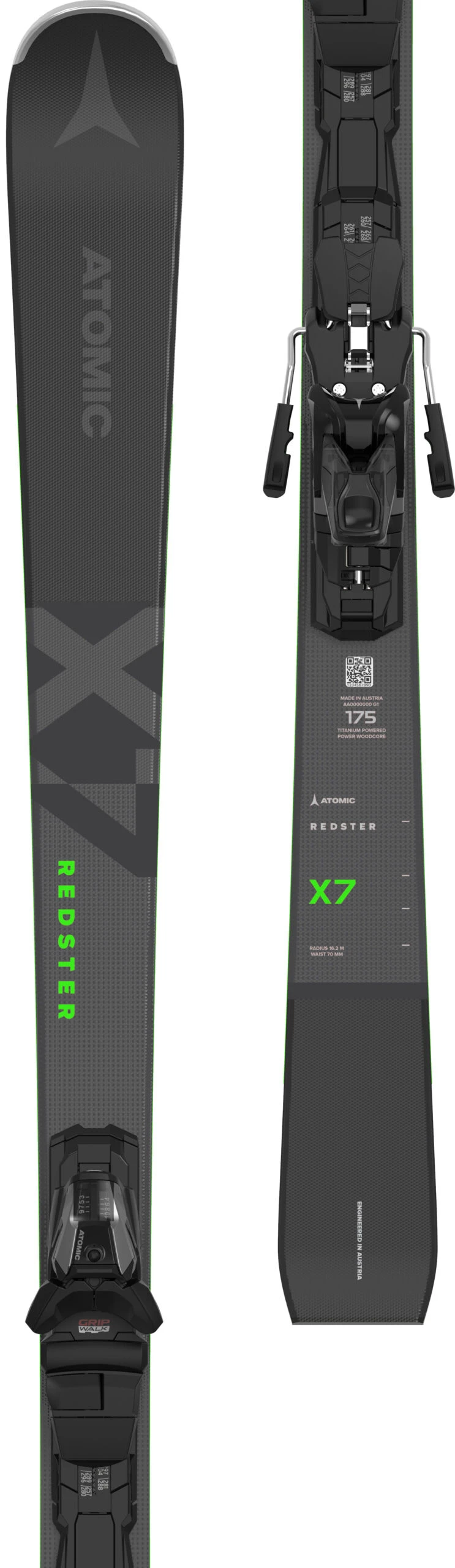 Verder heeft de ski een houten kern, een volledige sidewall en het belag is afgewerkt met een worldcup base finish wat zorgt voor extra glijvermogen. Deze ski is uitgevoerd met de Atomic X12 GW binding, welke met zowel normale als GripWalk skischoenen gebruikt kan worden. Het is voorzien van een zogenaamde Full Flex plaat, zodat de buiglijn van de ski nauwelijks wordt beínvloedt en de waardes van de DIN-instelling gegarandeerd blijven, zelfs bij de snelste bochten.