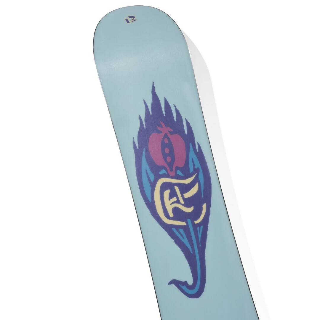 De Burton Kelly Air 1996 is een heruitgave van het board uit de Burton lijn van 1995. Dit legendarische board was 1 van de eerste “big-mountain” boards dat gemaakt werd voor echt off-piste werk. Dit keer alleen wel gebouwd met de standaard van nu. Dit directional board heeft een houten kern welke omlegd is met 3 lagen glasvezel. Dit geeft het board een stevige lengte stijfheid mee, maar ook de torsie is niet goed stevig .Wat het board niet had destijds maar nu wel zijn carbon toevoegingen. Deze liggen in een hoek van 45 graden over het glasvezel heen. Voor meer grip op de kanten en geven meer response tijdens de kantenwissel. Een goede upgrade. De base is van hard kunststof, sintered noemen ze dat. Dit geeft je optimaal glijvermogen en zorgt voor een juiste bescherming tegen de stenen onder de verse sneeuw. Het origineel had een 3d patroon met inserts, maar deze heeft het Channel systeem. Eindeloos verstellen en tunen van je bindingstances is de rede waarom dit erop zit. Rijdt het board met een EST binding, voor maximale demping en feeling met wat er onder je board gebeurd. Een ware retro Classic! Er is ook een sweater uitgebracht met de iconische print erop. Leuk om te matchen.