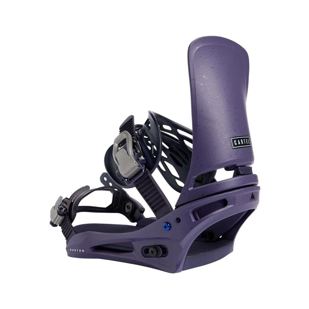 DeĀ Burton CartelĀ is een van de meest verkochte bindingen in dit stijfheidssegment. Met zijn bovengemiddelde stijfheid is dit een binding met wat performance. De baseplate is van composite materiaal gemaakt in de mix met Nylon. Licht en zeer sterk, maar natuurlijk direct in krachtoverdracht. er zit een goede demping onder de voet, voor rust tijdens onrustige sneeuw of een landing. De straps zijn minimalistisch en fitten erg goed m elke boot. geen drukpunten en je voelt ze nauwelijks. De highback is niet al te hoog en rond zodat deze je niet teveel belemmert in de zijwaartse beweging. Een makkelijke forwardlean zorgt voor de juiste stand tegen je boot. Ook is er een speciale padding voor goede demping en nog meer grip van je boot tijdens de bochtinzet over je tenen. De binding is goed verstelbaar in alle dimensies en is niet veranderd sinds vorig seizoen. Er zijn weer diverse mooie kleuren, om alles weer perfect te kunnen matchen met je nieuwe, of oude board.